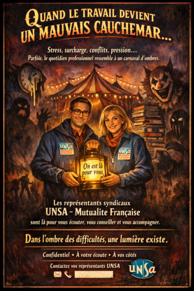 …. L’unsa est la pour vous souhaiter de trouver le bonheur. Nous écoutons tout le monde! Vous avez besoin de discuter, de vous sentir écouter ? Aucun problème, les élus sont la. Vous avez des…